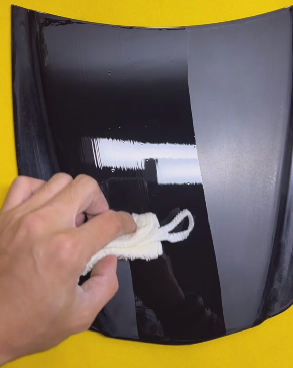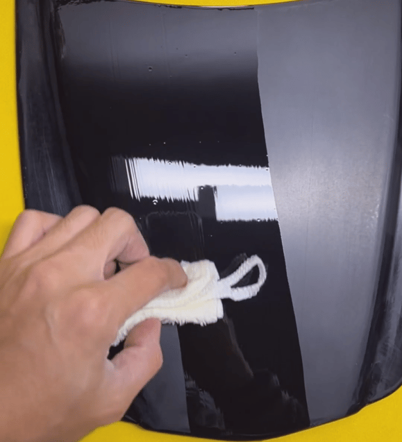 Sul cofano l'applicazione migliore si ottiene partendo con l'applicazione dal parabrezza e procedendo poi verso la griglia frontale dell'auto